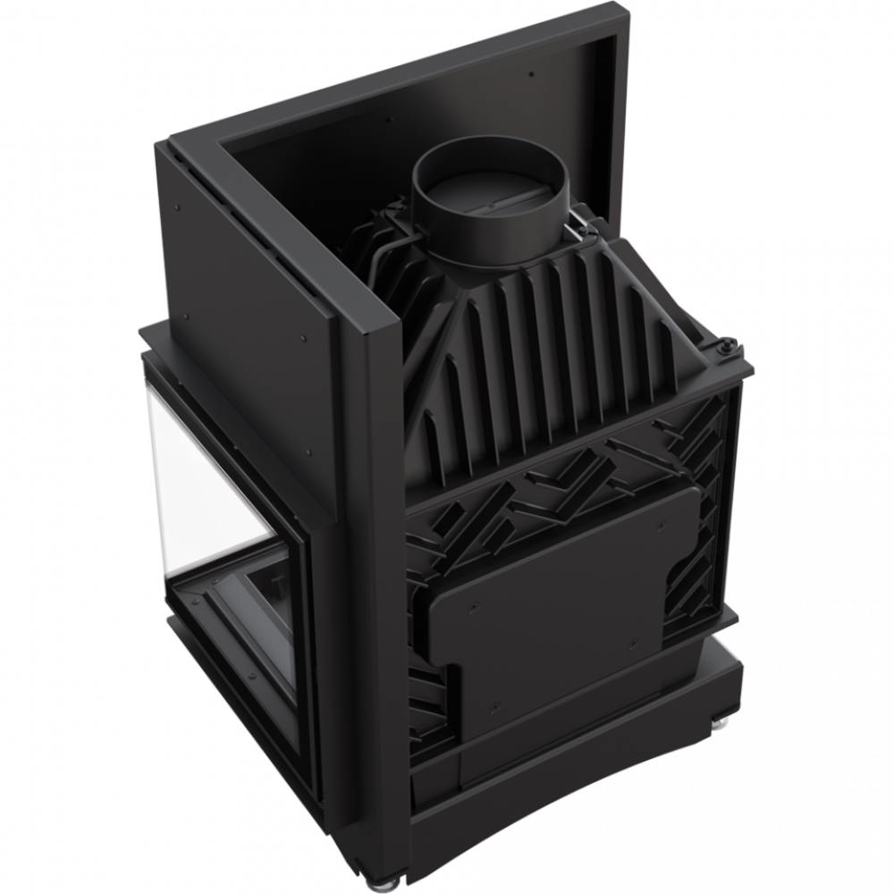 - Современная передняя сторона топки изготовлена из стали, имеет декоративную жаропрочную керамику, что выдерживает температуру до 660 °C. Вмонтированное стекло имеет сертификат качества и безопасности. Декоративная стеклянная панель типа glass не только выглядит элегантно и современно, но и оптически увеличивает переднюю сторону топки и подчеркивает созерцание огня. Рамка дверец изготовлена из закрытого профиля, что делает ее надёжной и устойчивой к нагрузкам, которые возникают во время работы при высоких температурах.