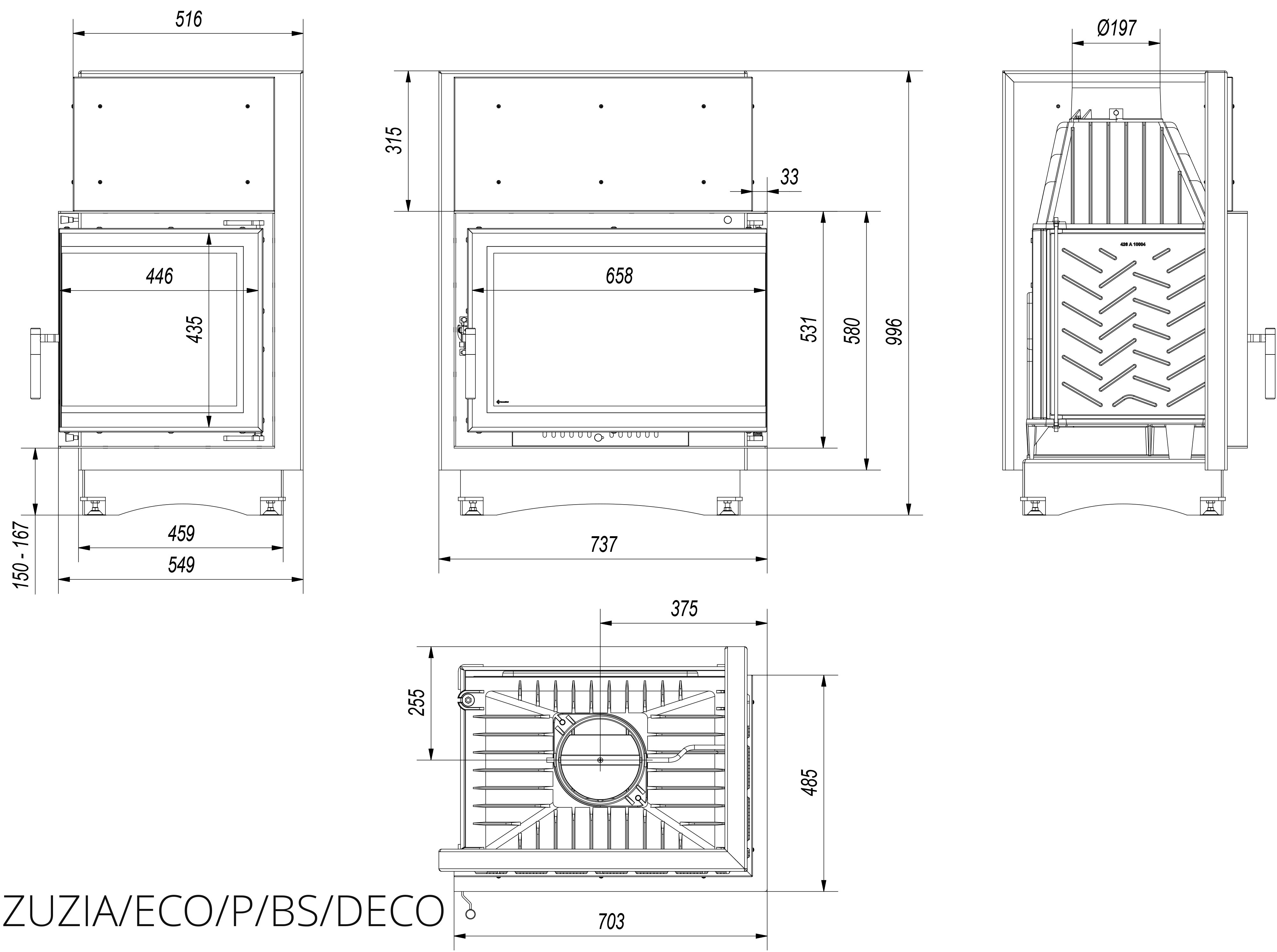 Каминная топка Kratki Zuzia/Eco/P/BS/Deco