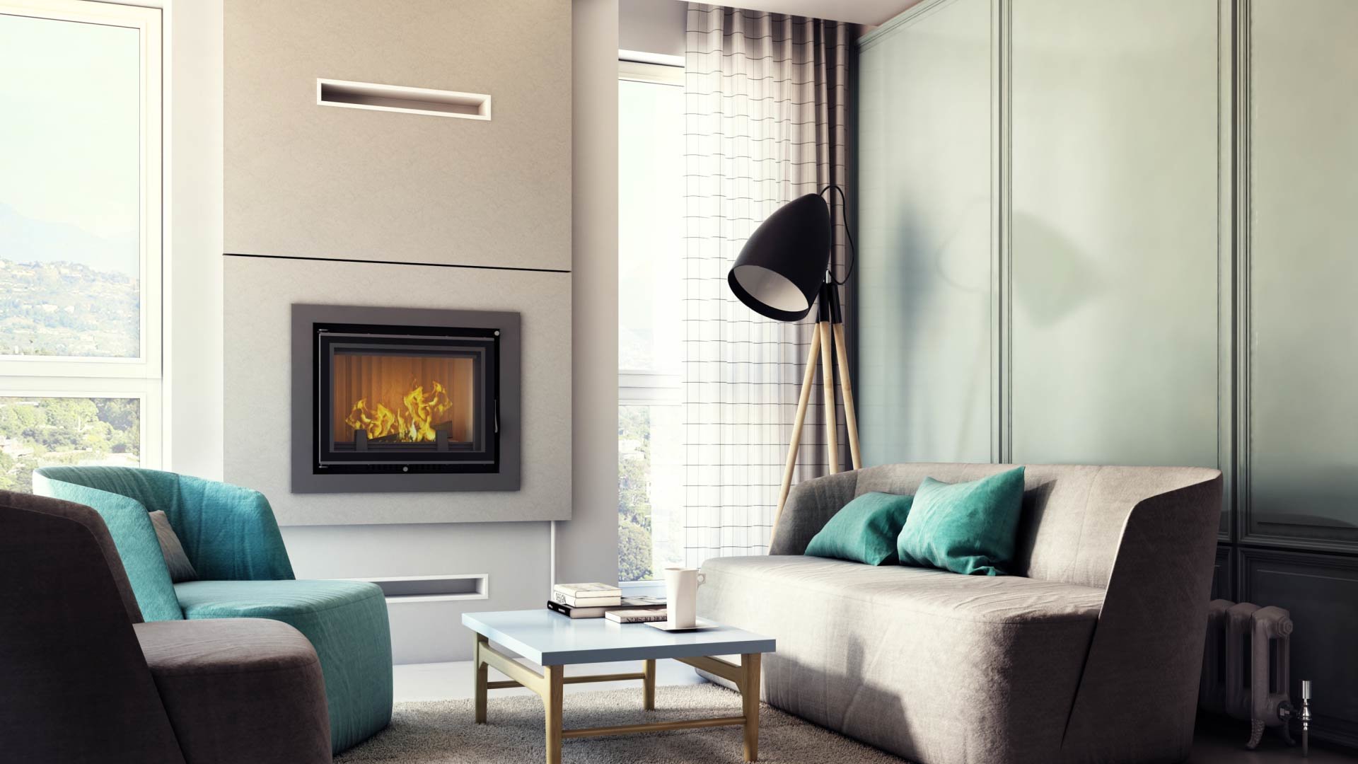 - Декоративная стеклянная панель типа glass, которая выдерживает температуру до 660 °C и предоставляет камину современного и элегантного вида, оптически увеличивает переднюю часть топки.