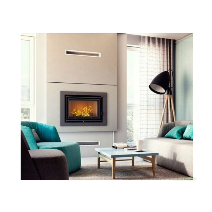 - Увеличена поверхность теплообмена благодаря встроенным водяным дефлекторам и высокому переходу камина в дымоход.