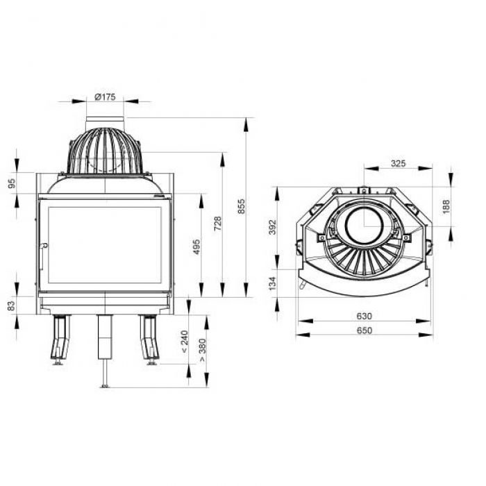 - Диаметр дымохода, (мм) 175