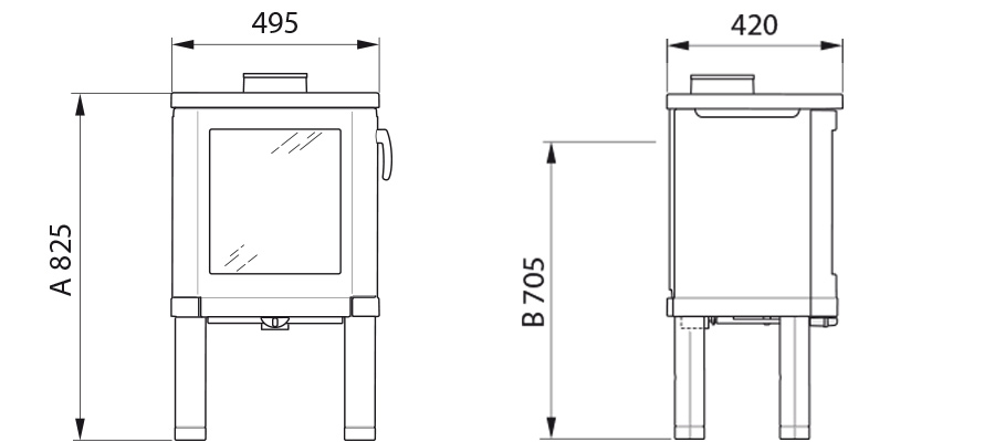 Современный камин из чугуна с хорошей конвекцией. Регулируемые ножки помогут надежно установить его на любой пол.
