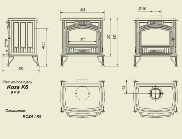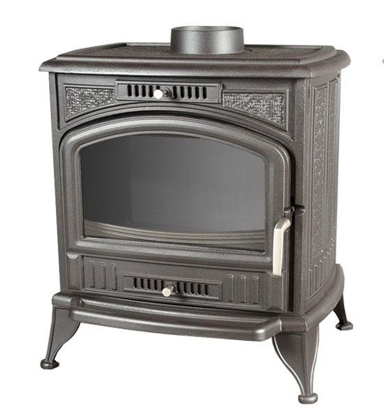Серая чугунная печка для дачи с номинальной мощьностью 9кВт. Печь относится к категории эконом класса. С помощью рычага возможно регулирование подачи воздуха на горение. В качестве топлива можно использовать не только древесину, но и угольные брикеты.