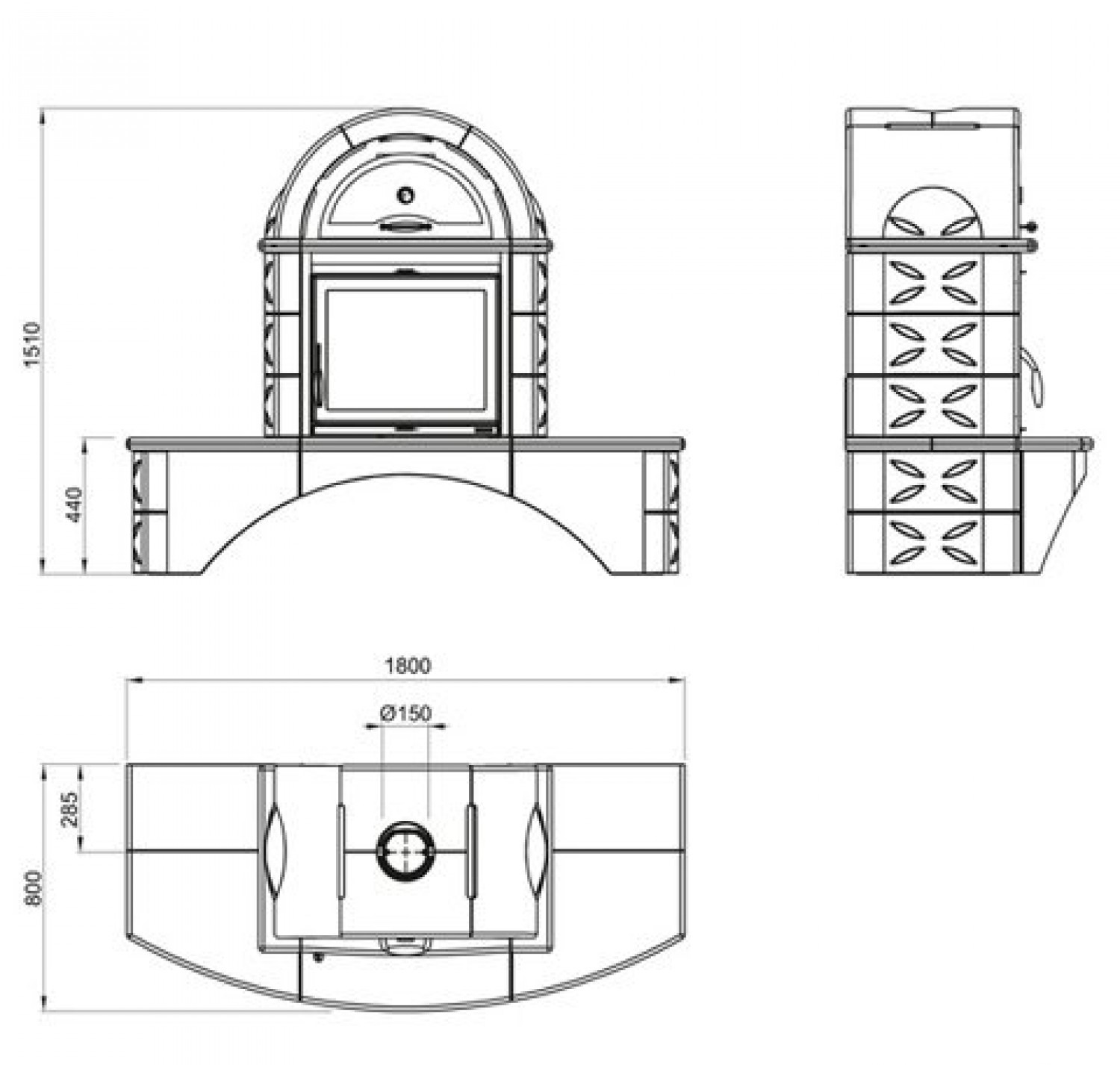 - Диаметр дымохода, (мм) 150 мм.