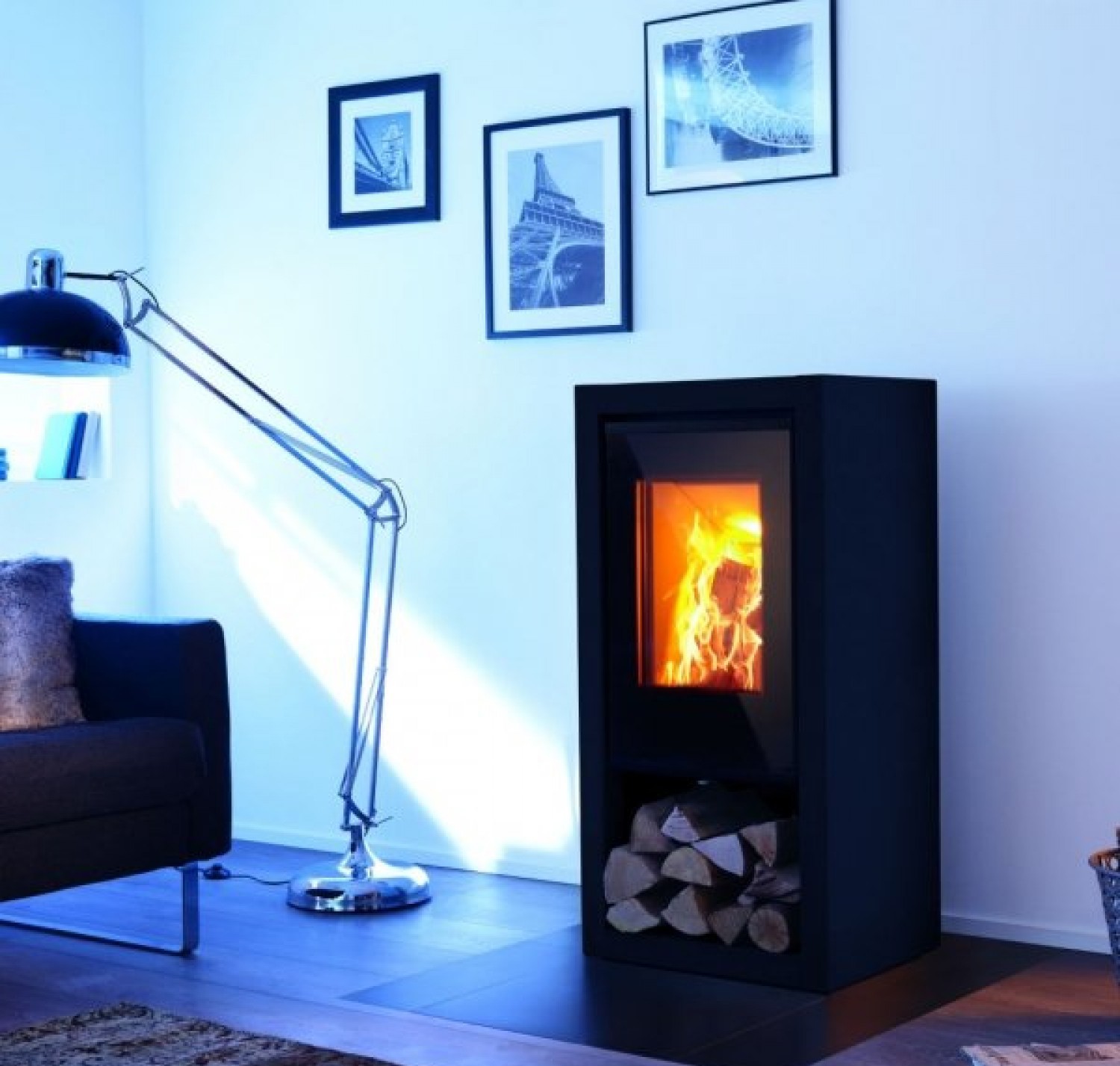 Печь-камин работает на дровах, при этом весь дым выходит через трубу за пределы помещения, внутри комнаты запах отсутствует, поэтому нет причин беспокоиться, что дымом пропахнут мебель и другие вещи в помещении. Мало какая модель печи-камина, способна так органично вписаться в интерьер абсолютно любого помещения, здесь сочтены идеальные пропорции, качество и стабильная работа. Под дверью имеется просторное красивое бунгало, которое упрощает хранение дров.