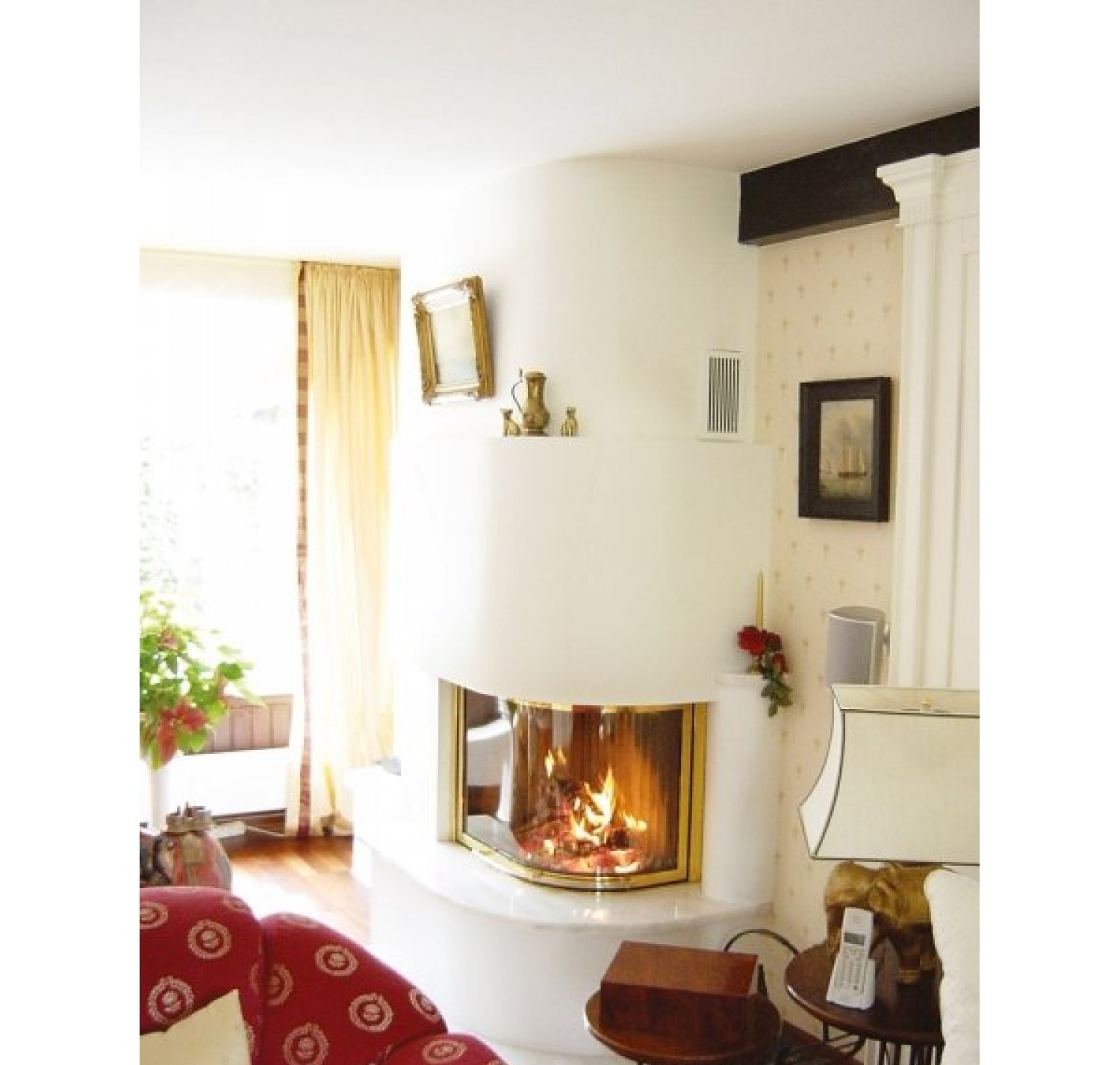 Общепринятые угловые топки чаще всего имеют прямой угол 90 градусов, каминная топка Spartherm Varia 2LRh обладательница полукруглого угла.Подобный внешний вид топки гарантирует ее идеальное расположение в каминной облицовке имеющей овальные , закругленные формы. Каминная дверца топки открывается вертикально и вбок. Вариативность отделки рамки каминной дверки позволяет удачно вписать ее в облицовки абсолютно различных стилей.