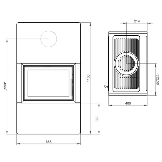 Stockholm относится к дровяным печам пристенного типа и имеет прямоугольный корпус. Топка закрыта стеклокерамическим окном, выдерживающим высокотемпературный нагрев. Дополнительное украшение этого современного камина- хромированная рамка.