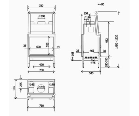 Система «чистое стекло» - технология, которая позволяет стеклу камина долгое время оставаться чистым и не коптиться. Также топка оснащена регулировкой подачи воздуха на горение и шиберной заслонкой с автоматическим открыванием(при открывании дверцы, шиберная заслонка открывается автоматически, данное преимущество позволяет максимально ограничить проникновение дымовых газов в комнату).