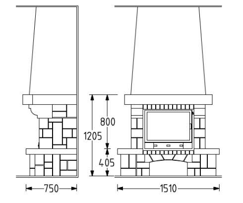 Цена указана за камин в стандартном исполнении (см. чертеж) из указанных материалов без топки.