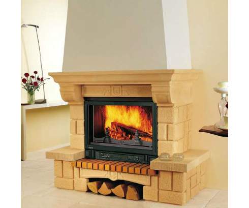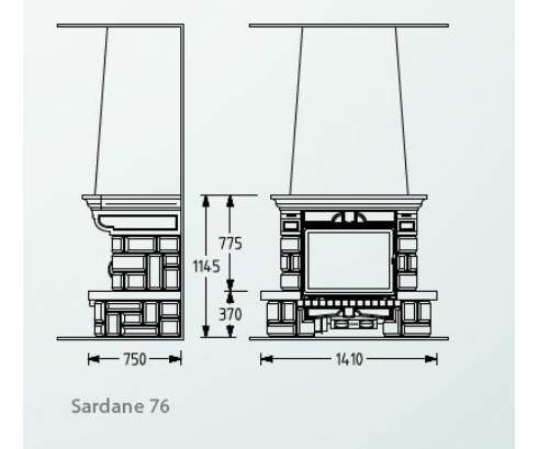тильный камин в стиле кантри сочетает в себе некоторую грубость отделки с плавностью линий и нежностью классических декоративных элементов. Пристенная облицовка Sardane 76 Sand - модель, изготовленная из камня Эдельрок золотисто-песочного оттенка со стильными барельефами в  стиле кантри.
