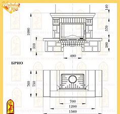Ширина очага 1010мм, глубина очага 440 мм. Высота видимой части пламени 510 мм.Очаг выложен кирпичными блоками без швов. Размер блока 110х220 мм. Подъемная ручка двери прямая 45 см.