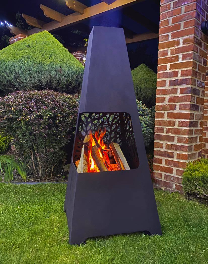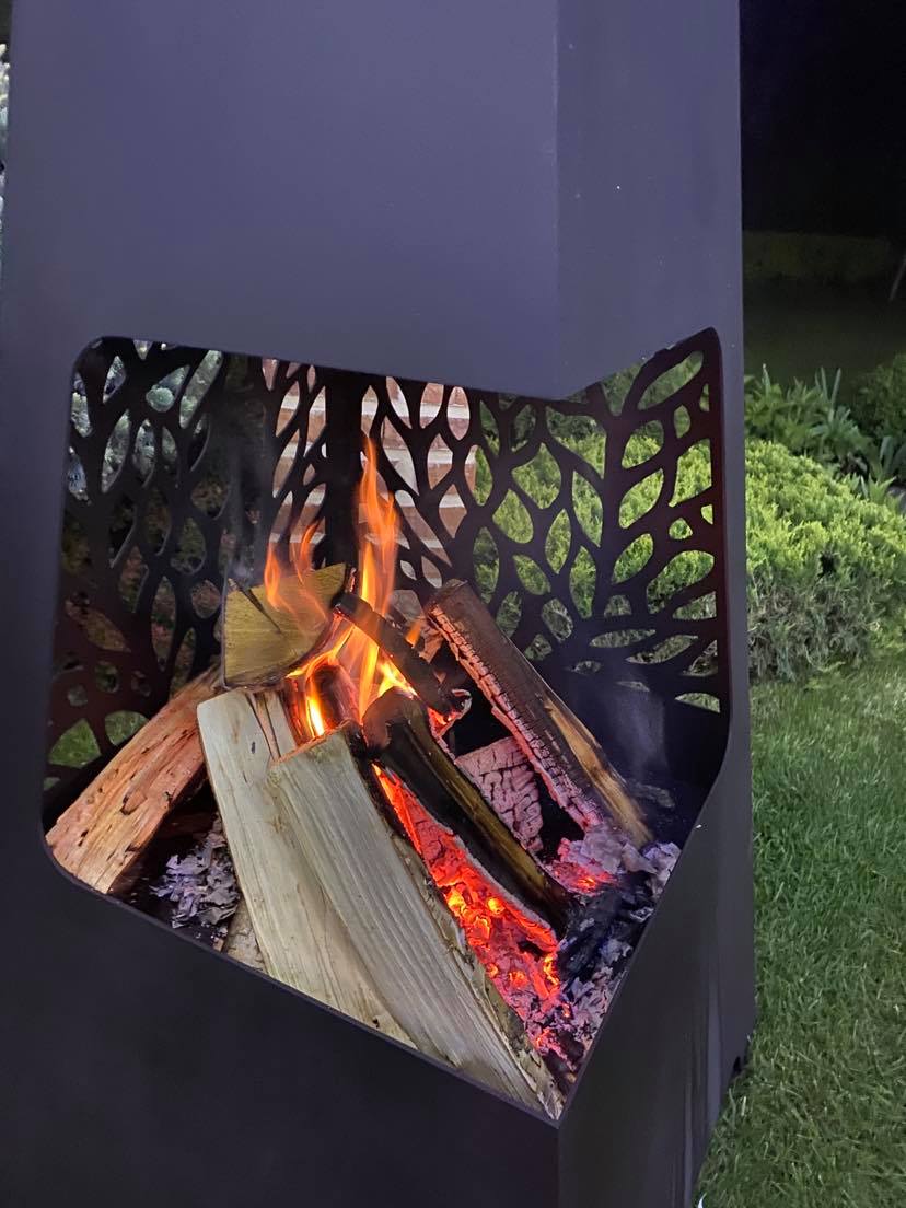 - изготовлен из специальной стали толщиной 3 мм, которая после короткого срока использования камина покрывается антикоррозийным налетом, что позволяет пользоваться камином на улице круглый год;