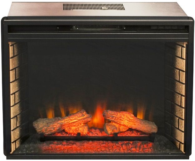 - Электрический очаг представляет собой встраиваемый изнутри очаг с рамкой. Классическая кирпичная кладка на стенках камина, реалистичный огонь с использованием LED-технологий, лаконичный строгий дизайн.