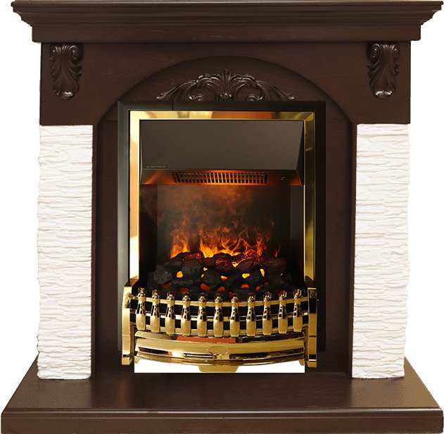 Каминокомплект Dimplex Bern выполнен в классическом стиле. Он изготовлен из дерева и искусственного камня и представлен в нескольких цветовых решениях. Фронтальная часть портала украшена резным орнаментом, который придает нотки античности. Колонны выполнены из камня, столешница и постамент – из дерева. Зона очага визуально выделена деревянным обрамлением контрастного цвета.