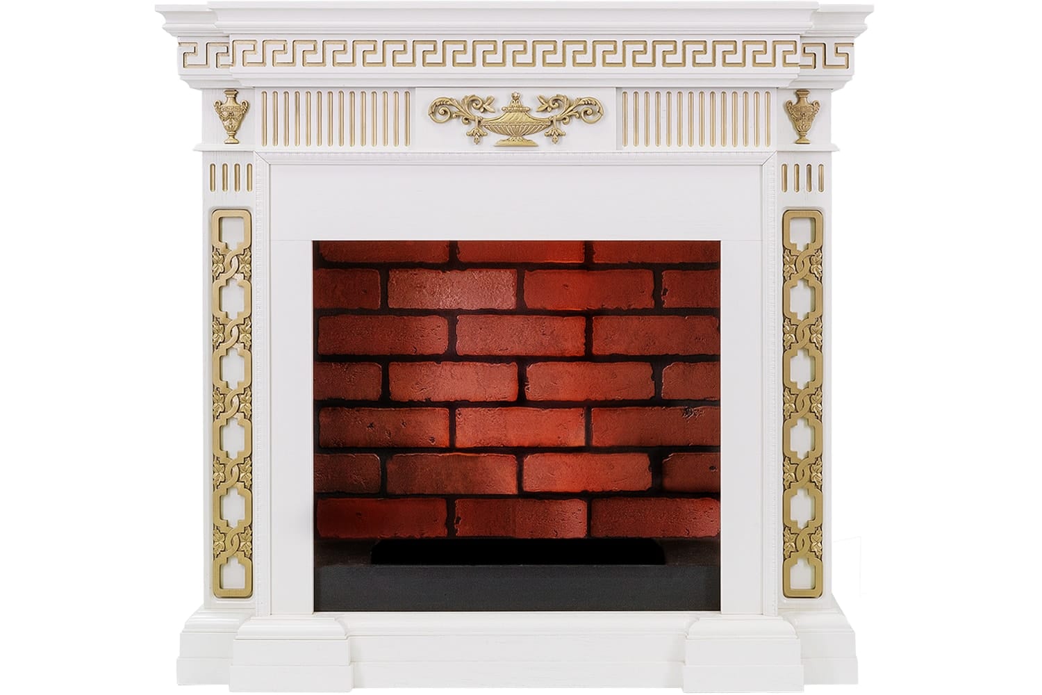 Компактные размеры портала позволяют установить каминокомплект даже в небольшом помещении. Он идеально подойдет для маленьких квартир и создаст стильный и современный интерьер. Строгость линий портала Greece визуально смягчается классическим золотым узором, расположенном на боковых частях и фронтоне. Античные амфоры и чаша служат завершающим штрихом каминному ансамблю.