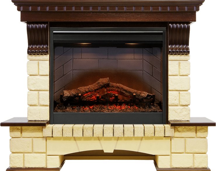 В очаге  предусмотрена возможность выбора режима обогрева –1 или 2 кВт, эффект пламени может работать независимо от обогрева. Максимально реалистичный муляж дров делает очаг максимально похожим на обычный дровяной камин.  Визуализация кирпичной кладки выполнена по всем внутренним стенкам очага. В очаге реализована функция плавно регулируемой подсветки. В комплекте с электрокамином предлагается пульт ДУ, чтобы холодными длинными вечерами, уютно устроившись в кресле, можно было только нажимать кнопки и наслаждаться отдыхом, любуясь завораживающим пламенем..