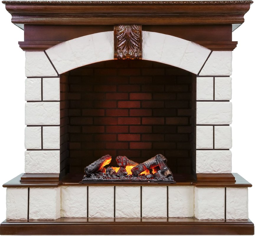 Обрамление выполнено из материала, имитирующего натуральный камень. Широкая столешница позволит разместить на камине предметы декора. Портал выглядит массивным и станет ярким акцентом гостиной, кабинете или столовой.