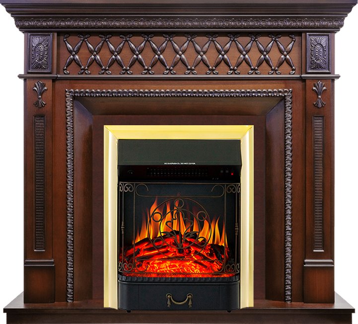 Каминокомплект Royal Flame Alexandria очаг Majestic FX Brass махагон коричневый антик