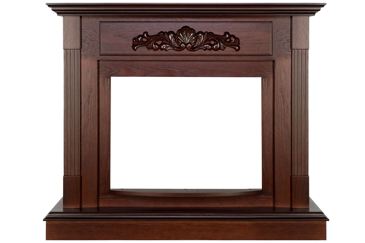 Колонны, обрамляющие зону очага, обозначаются лишь сдержанным классическим барельефом, что делает модель более легкой. Сверху фронтальная часть портала украшена резным орнаментом. Широкий постамент выдается вперед, оттеняя игру огня в топке.