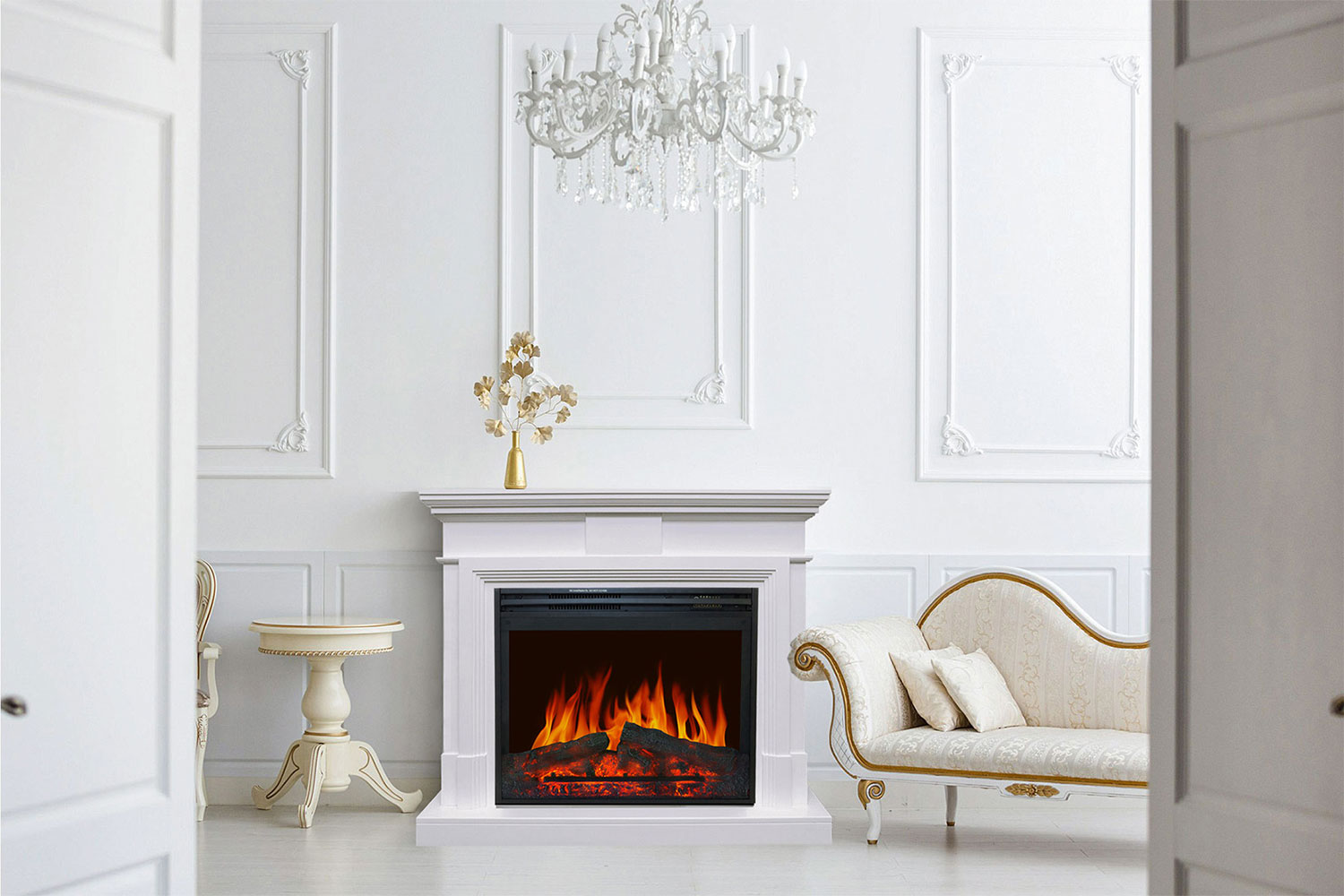 Портал Coventry подходит под электрические камины Royal Flame. В очагах встроена технология имитации реалистичного пламени и звуков потрескивающих дров, а также функция обогрева и регулировки яркости пламени.