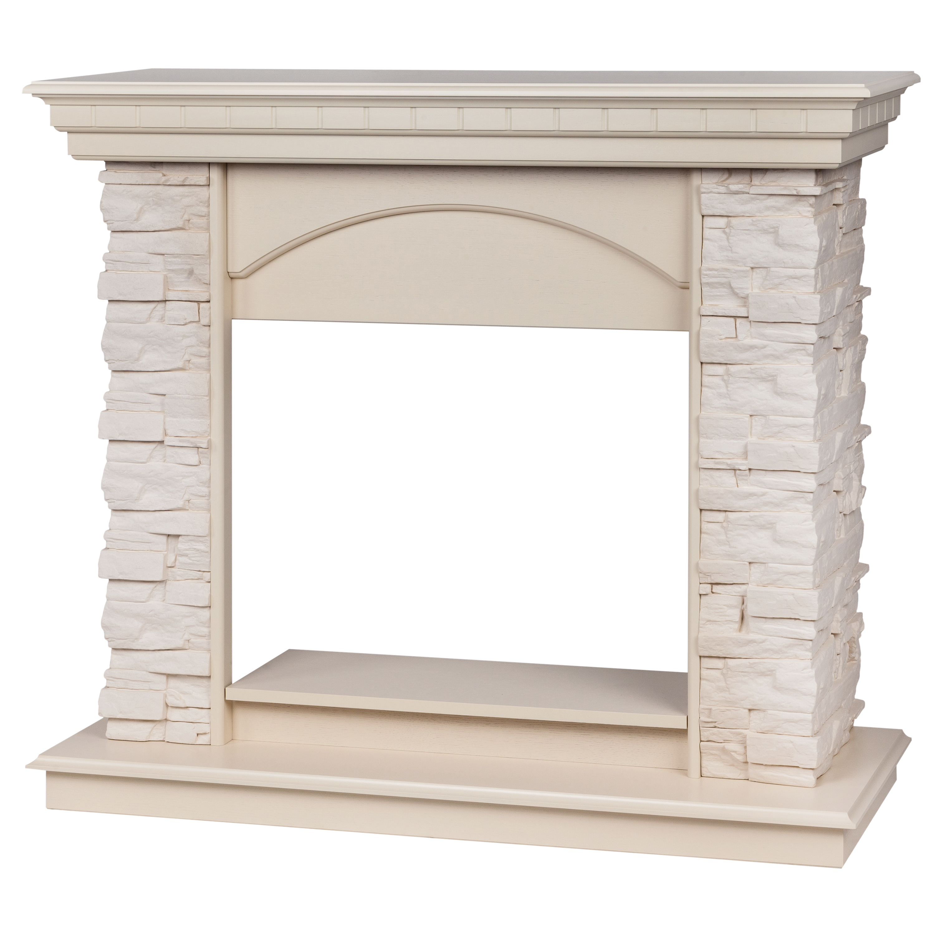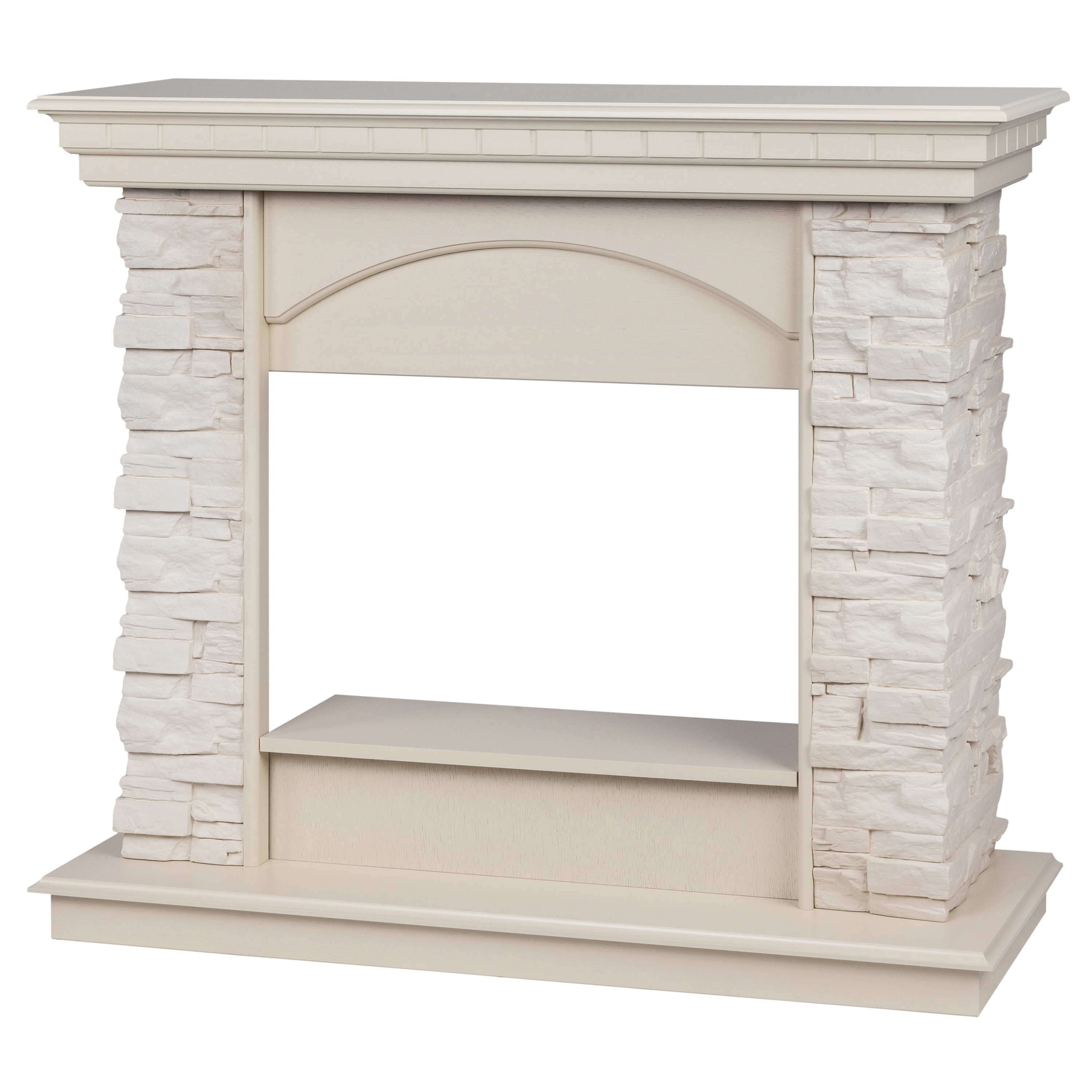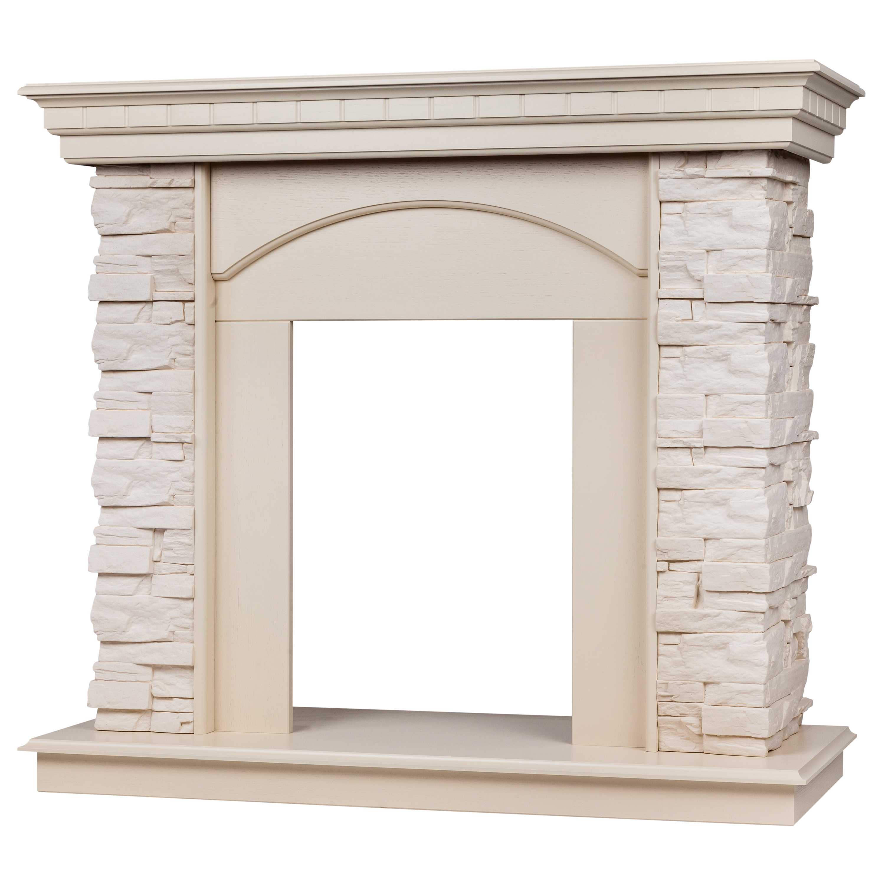- Портал выполнен из шпонированного МДФ цвета белый дуб и искусственного белого камня.