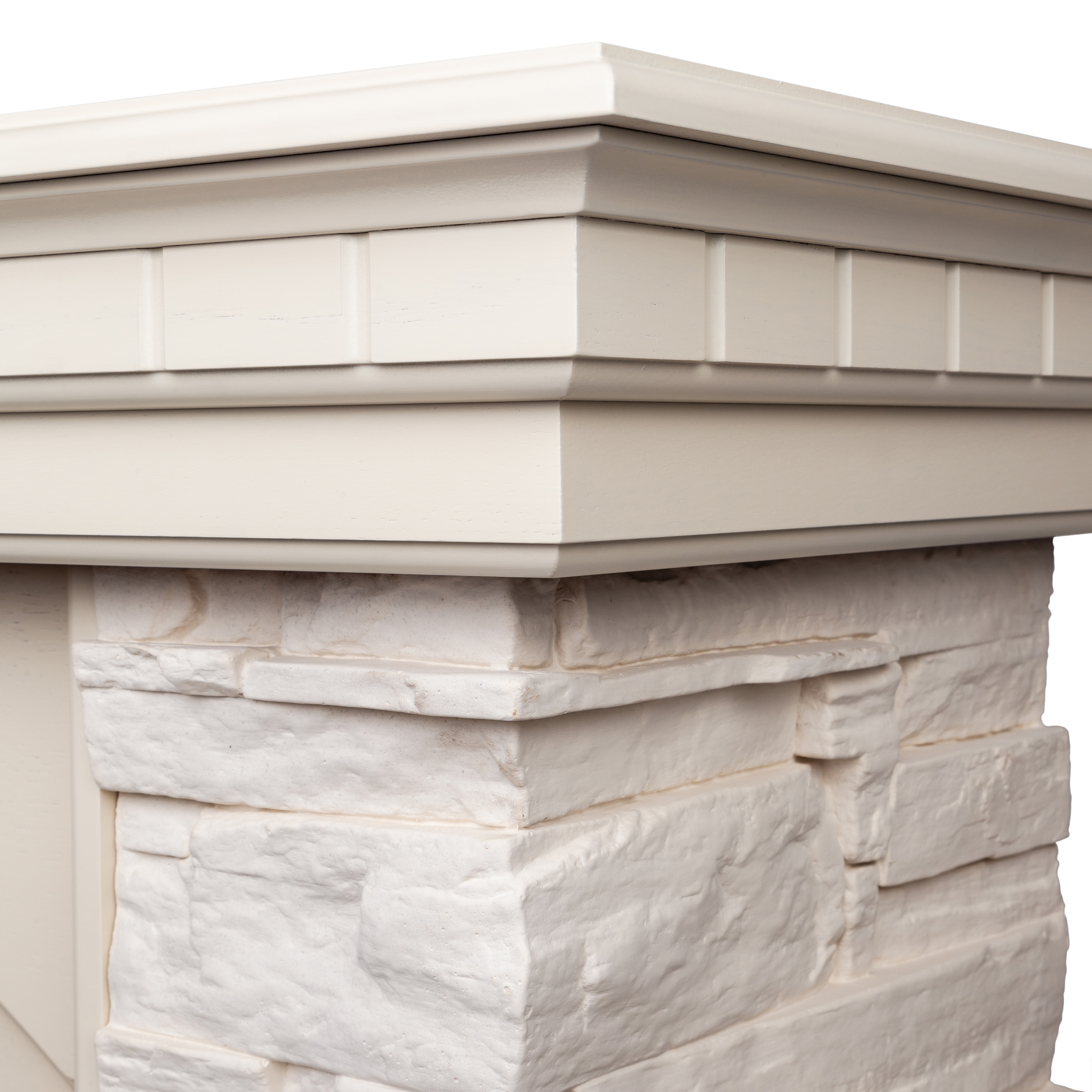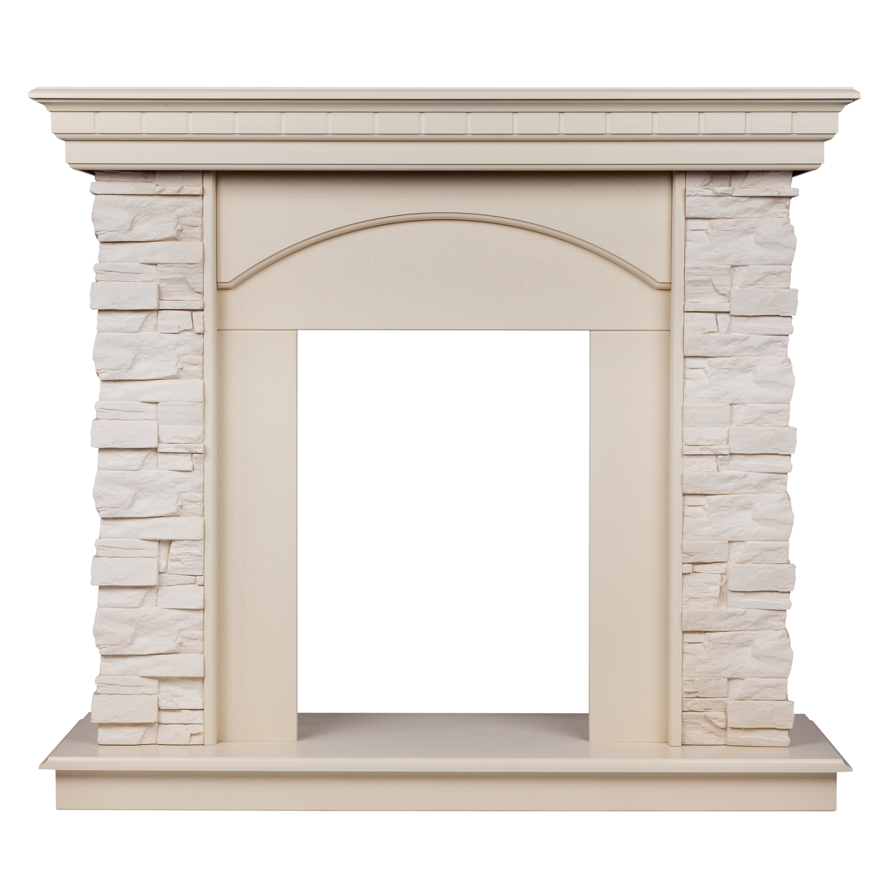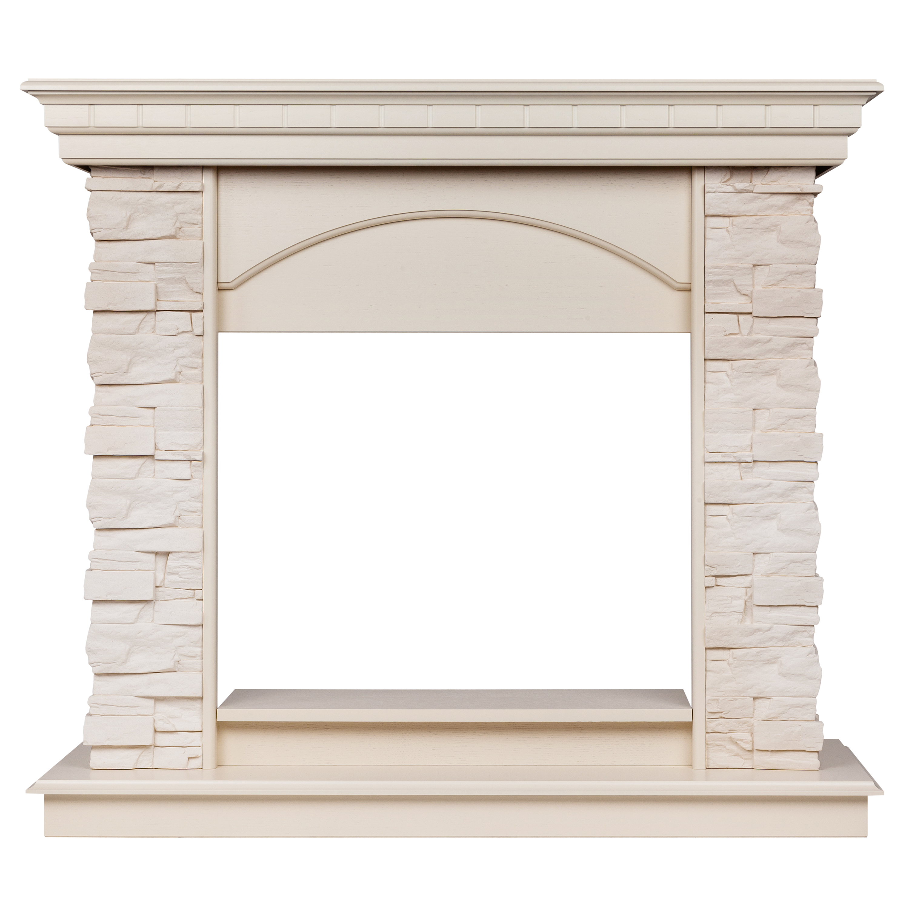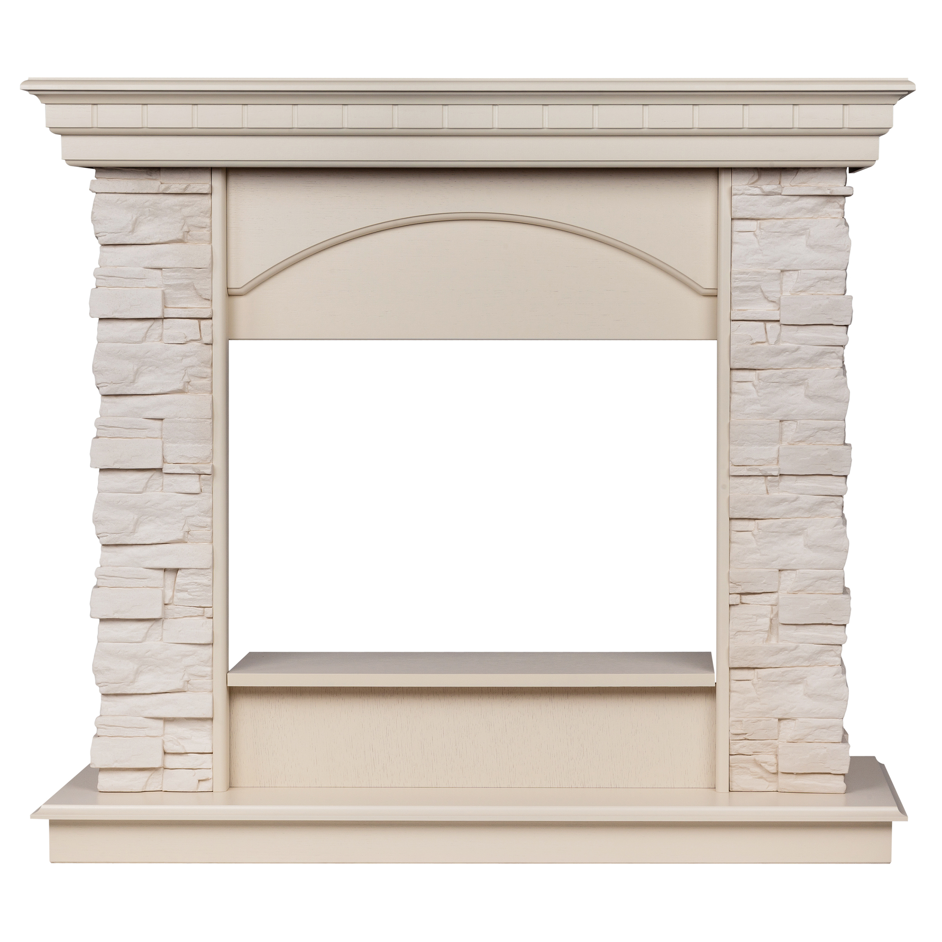 - Портал выполнен из шпонированного МДФ цвета белый дуб и искусственного белого камня.