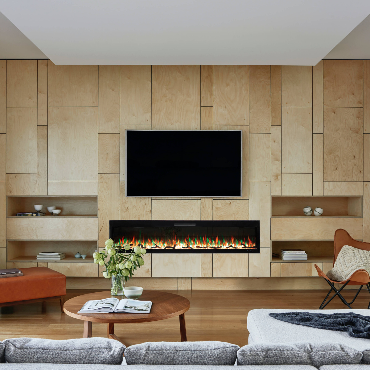 - Минимальная глубина встройки 127 мм, что упрощает встройку очага. Самая тонкая серия для встройки