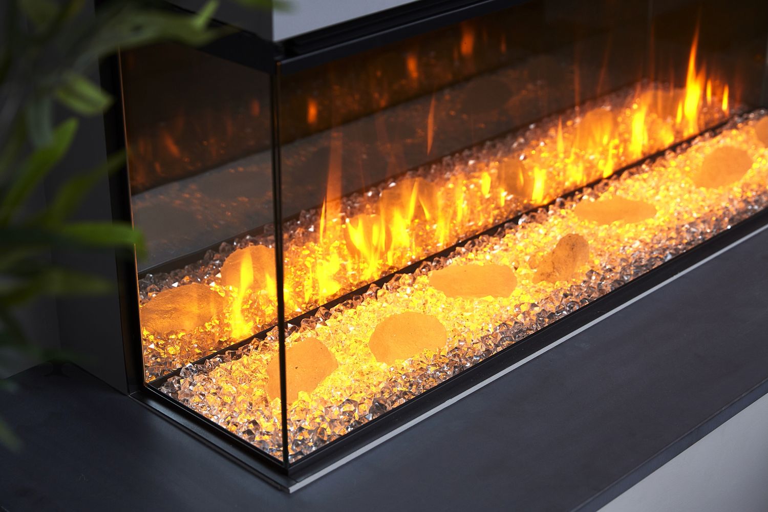 Электрокамин New Forest 1200 with Deluxe Real logs от английской компании BRITISH FIRES – это электрический камин высшего класса, который впечатляет своим дизайном и функциональностью. Особенность серии New Forest – трехстороннее (панорамное) стекло, создающее объемную и сверхреалистичную визуализацию пламени. Это делает камин неповторимым и выделяет его среди аналогов.