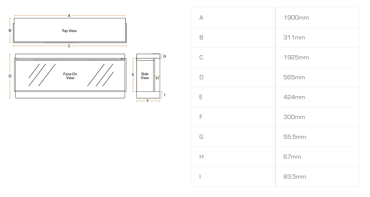 - Размер стекла, (мм): 1900х424