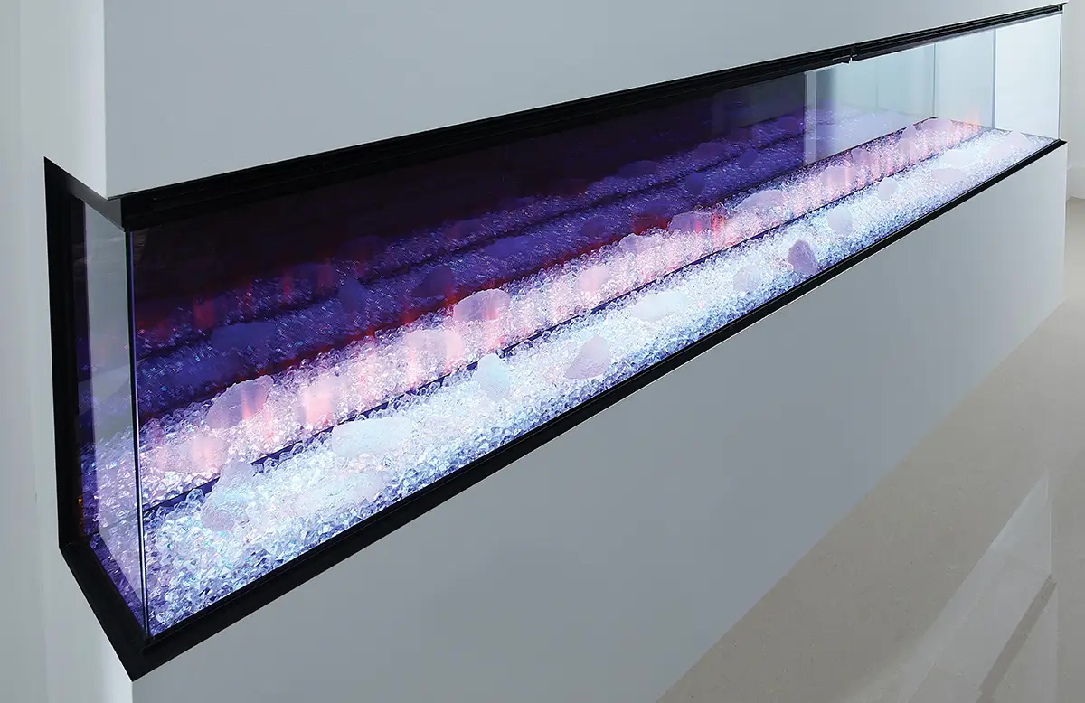 • Функция верхней подсветки: Освещает декоративные элементы (дрова и кристаллы), создавая отражение на задней зеркальной стенке, что усиливает визуальную глубину топки.