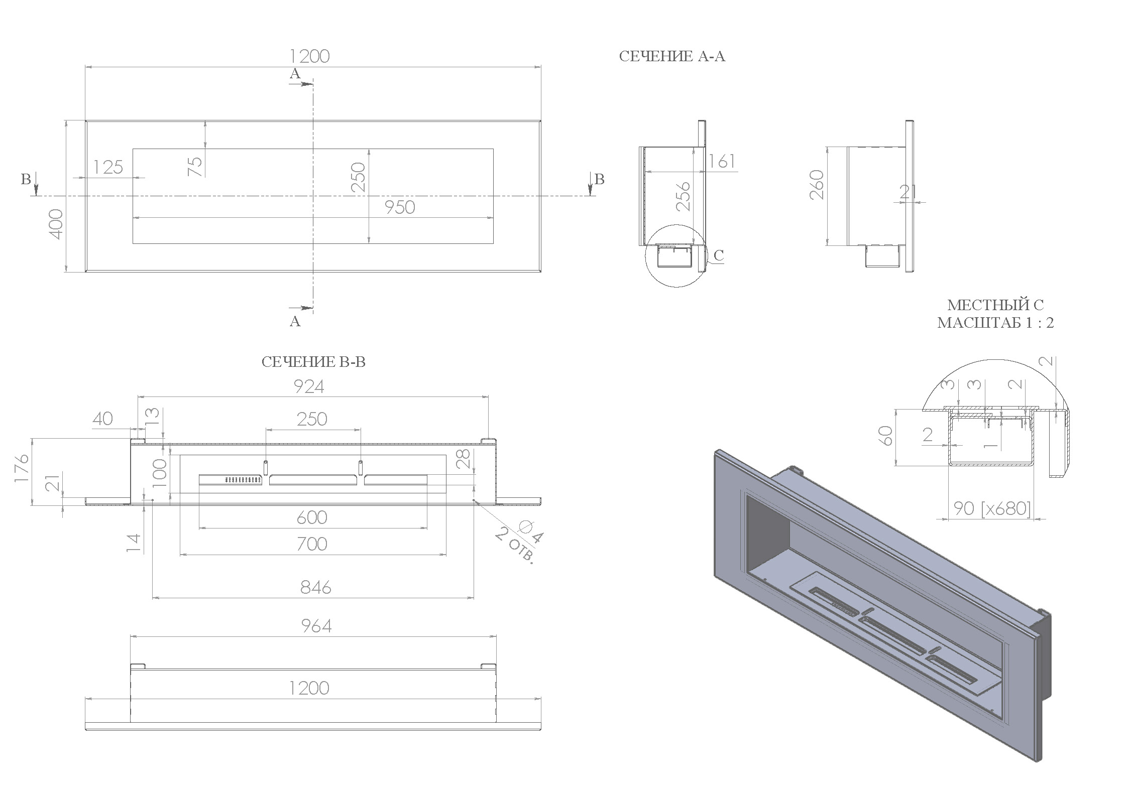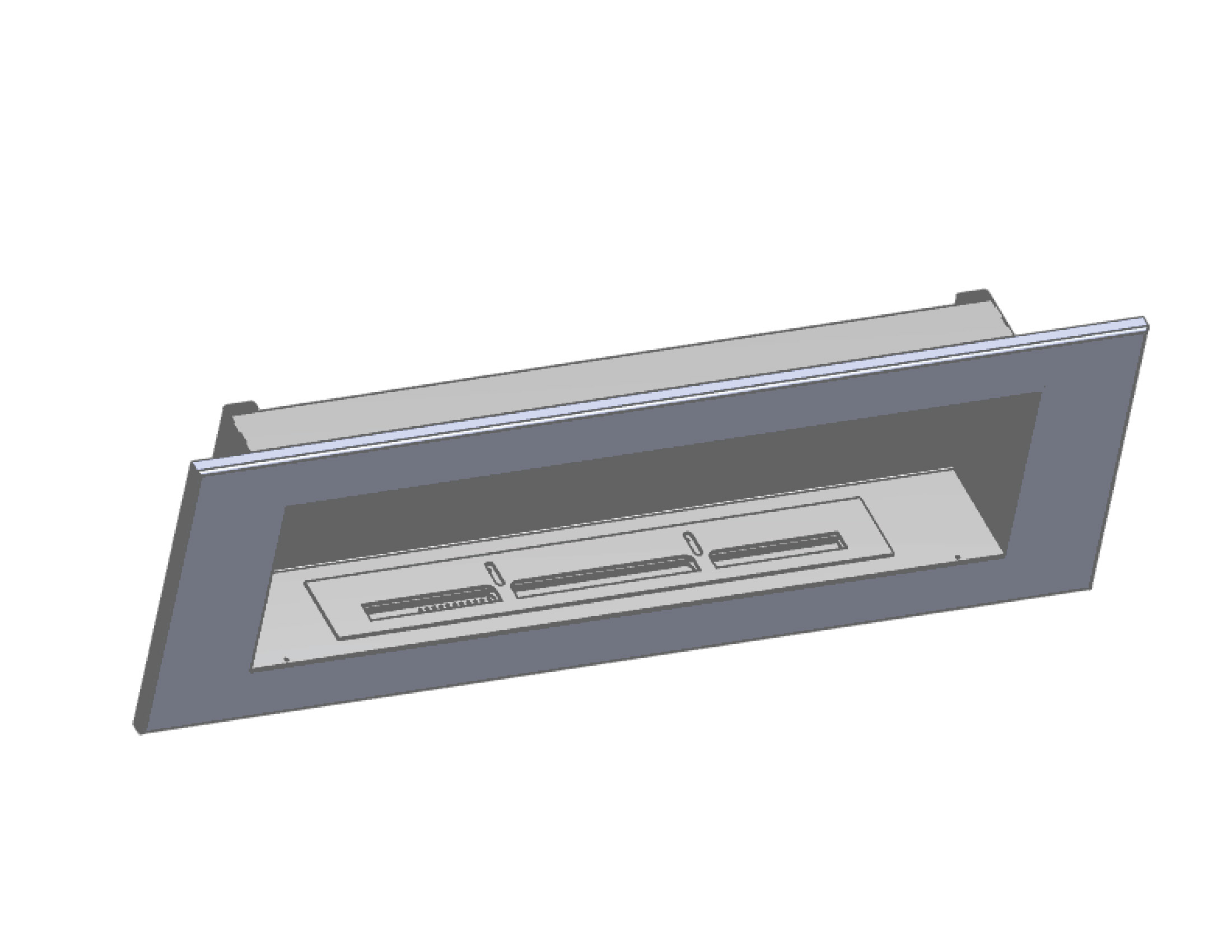По проекту дизайнера спроектировали и изготовили встраиваемый биокамин. Исполнение классическая широкая объемная рамка, окраска черный Муар.