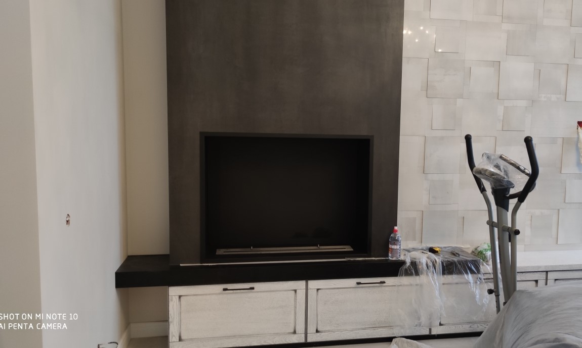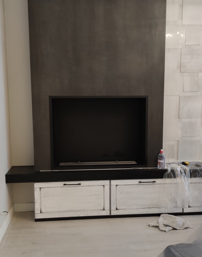 Изготовили и установили встраиваемый биокамин Firezo в стену из керамогранита в стильной квартире в г. Воронеж.