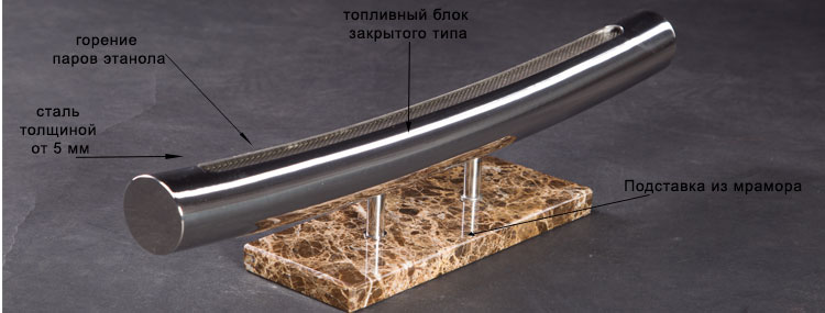 Firezo Samurai - высококачетсвенный подарочный биокамин ручной работы сделан из нержавеющей стали высшего сорта и мраморной подставки.