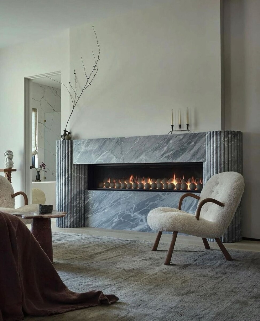 Полукруглые каминные порталы создают эффект динамики и движения в интерьере. Они хорошо смотрятся в современных и эклектичных стилях, добавляя плавности и гармонии. Требуют точных расчетов и подгонки при установке.